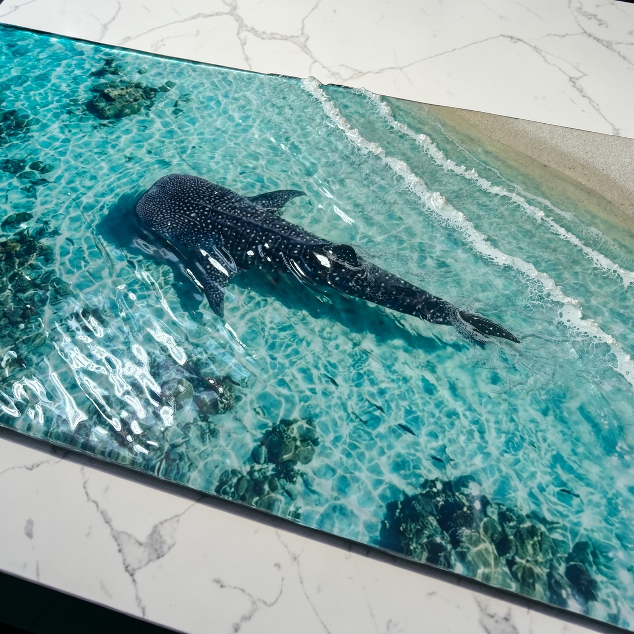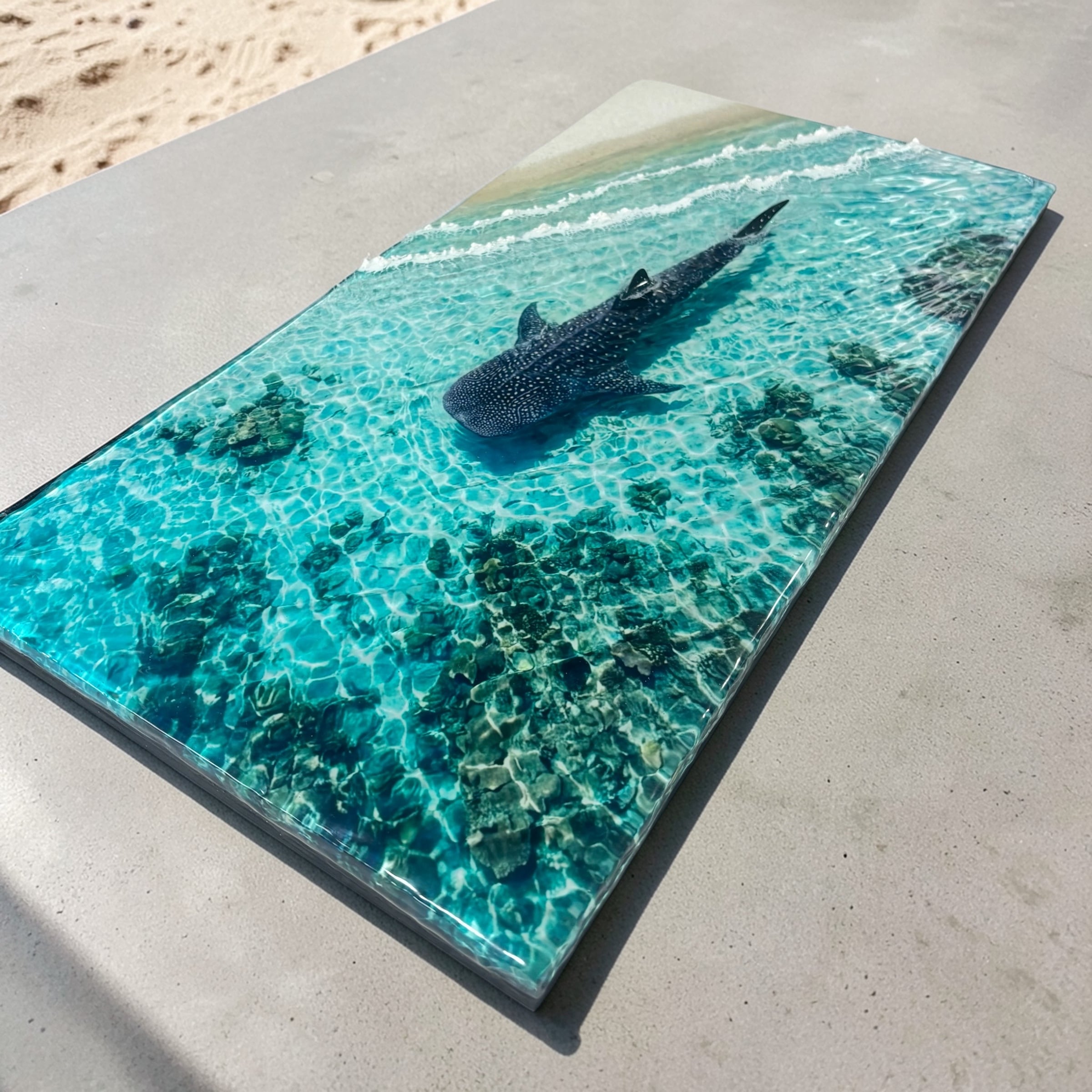 <特大傾斜厚盛りボード ジンベエザメ> 超立体 沖縄の海 レジンアートボード 美ら海 オーシャンアート N874